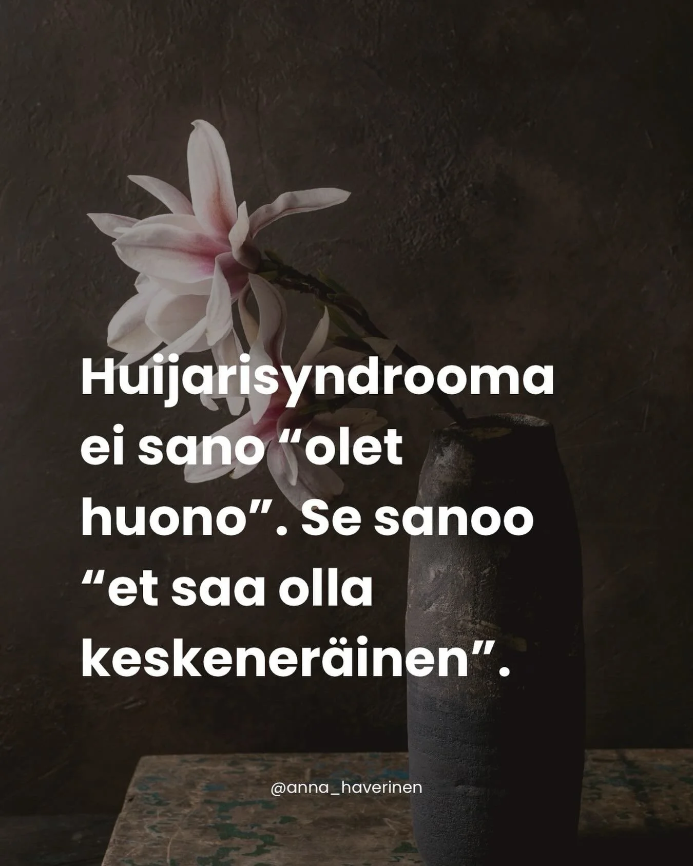 Työskentelyni on siis vaativaa siinä mielessä, että se edellyttää rehellisyyttä, pysähtymistä ja halua katsoa myös epämukavia asioita. Muutos vie aikaa.